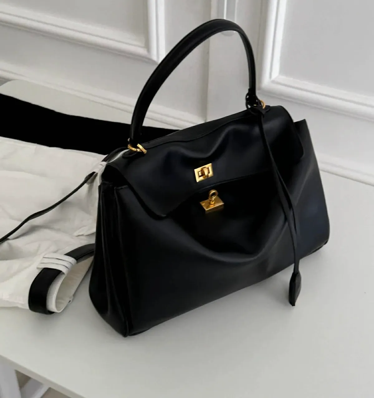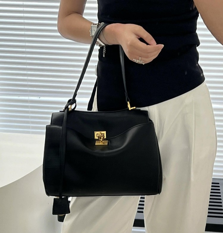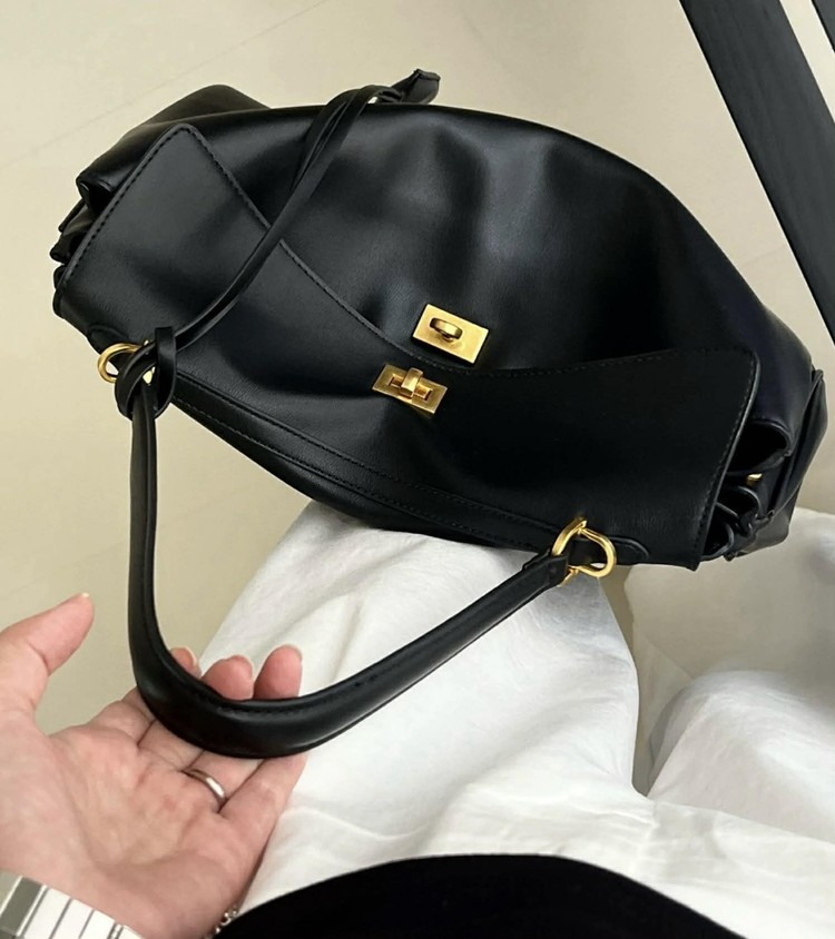 扣子有兩個,也可以直接扣裡面那個,包包垂墜感很慵懶時髦。