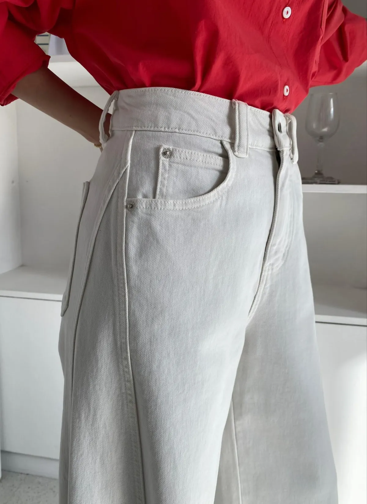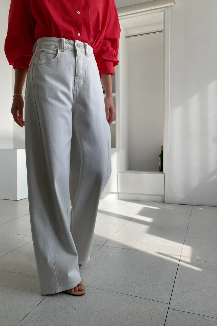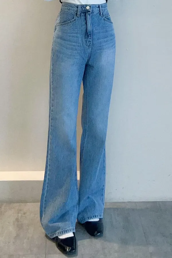 側裁線彎刀牛仔褲