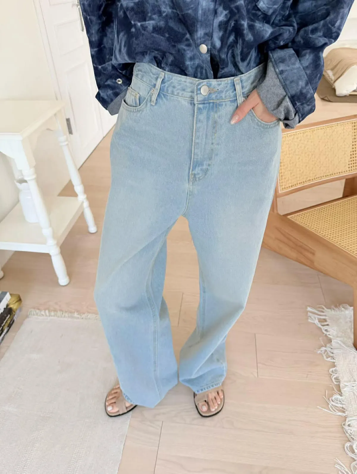 選用舒適柔軟的牛仔面料穿著自然垂墜,展現俐落線條清爽淺刷色設計色澤層次分明,視覺清新耐看直筒褲剪裁修飾腿部比例自然延伸線條,穿著顯瘦不貼腿整體氛圍慵懶隨性輕鬆融入春夏各式穿搭打造清爽又百搭的日常造型材質:聚脂纖維尺寸:S/M/L