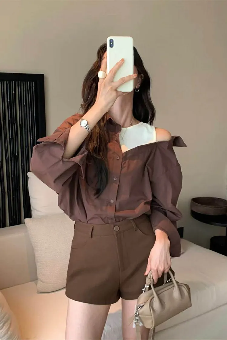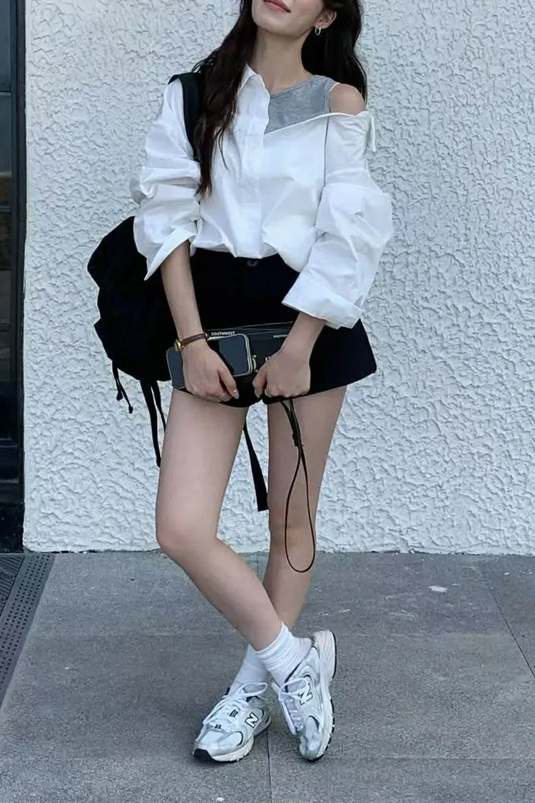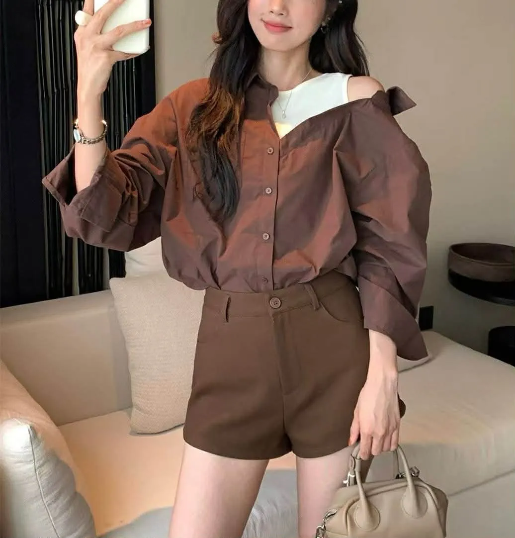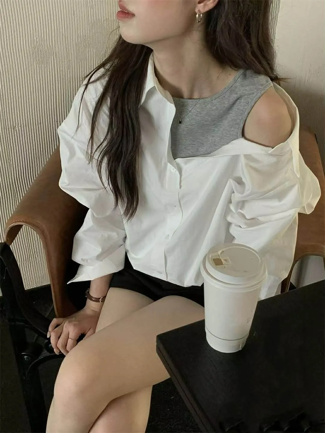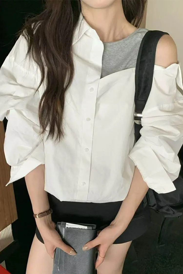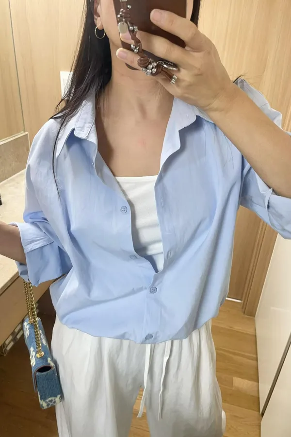 假兩件時髦短版襯衫