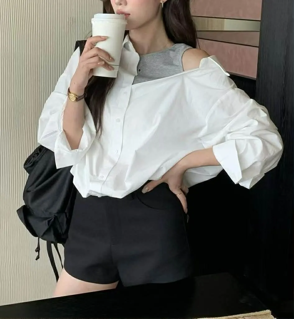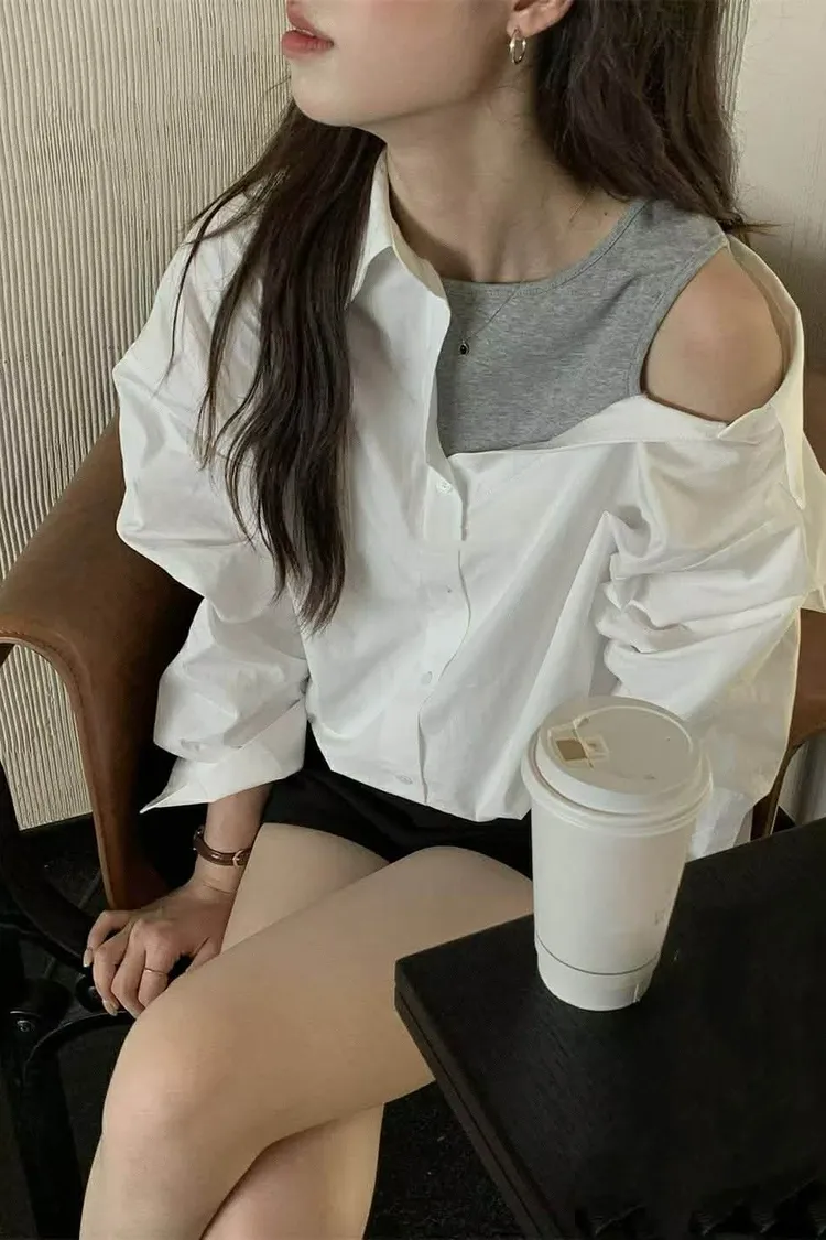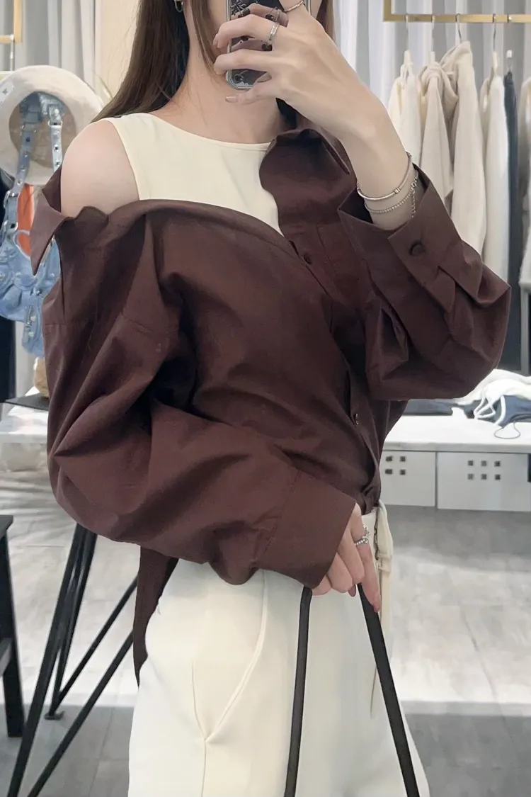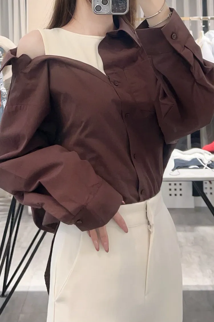 假兩件斜肩衫