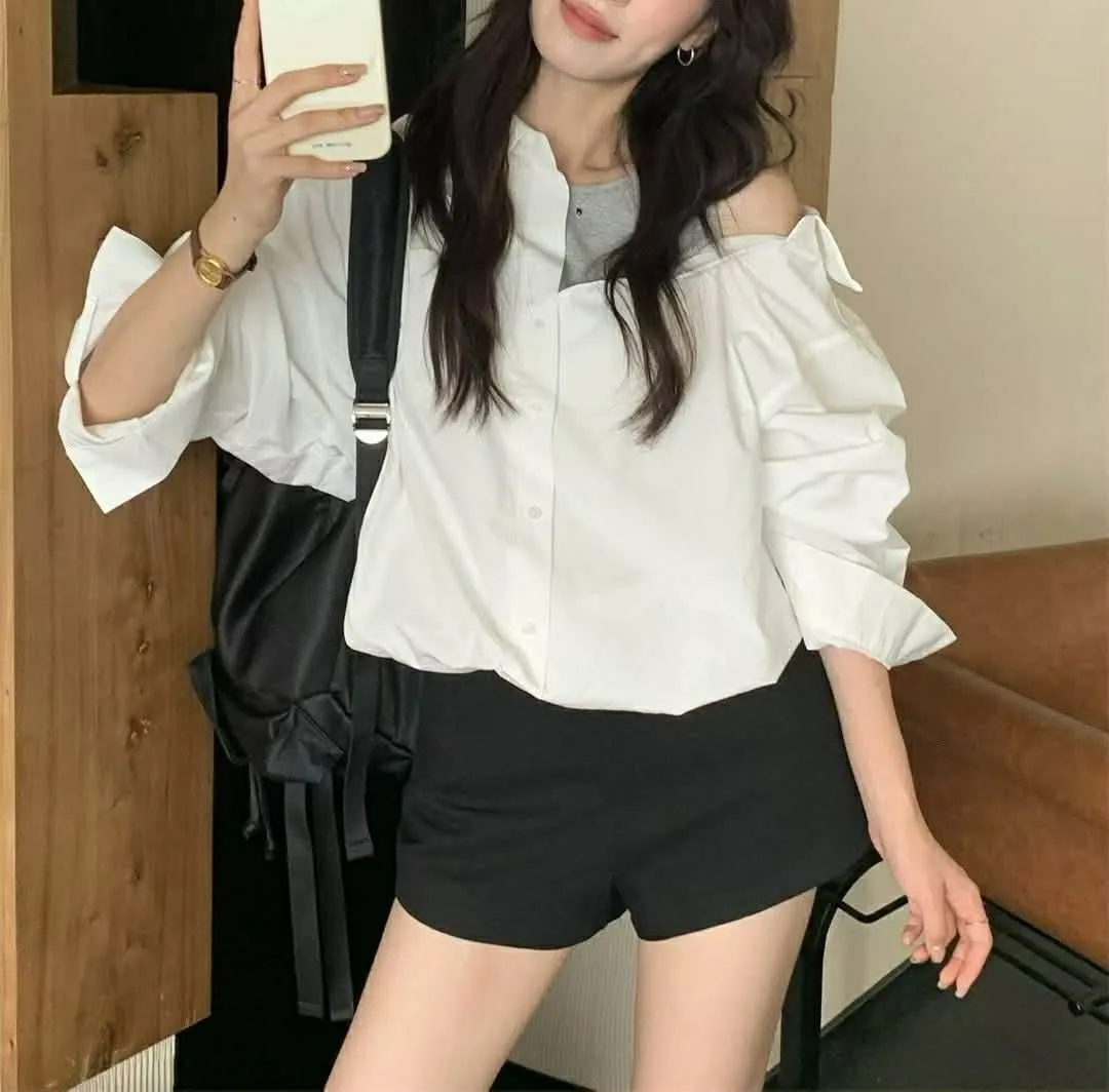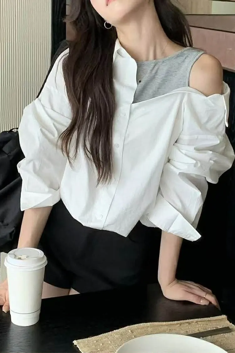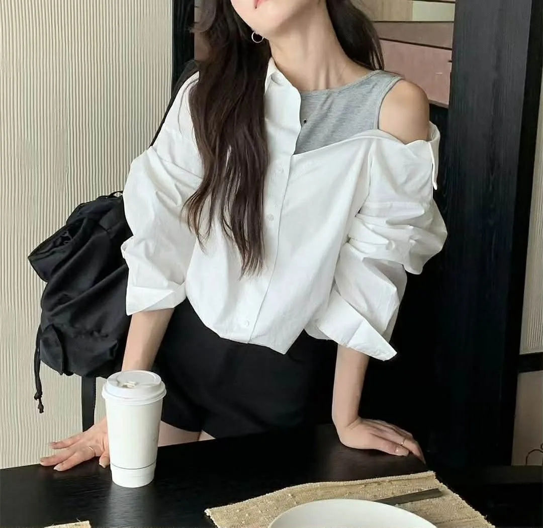 假兩件斜肩衫