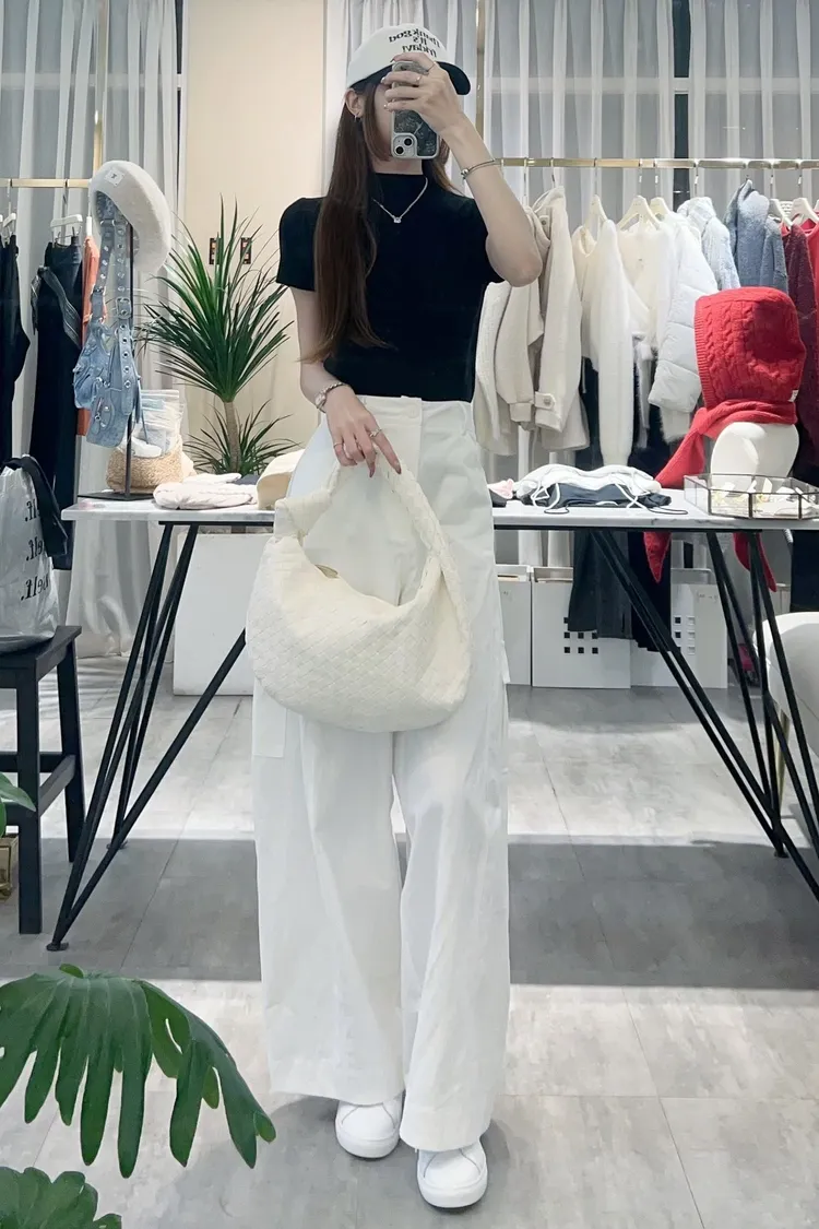 光澤感坑條短袖T+寬褲SET